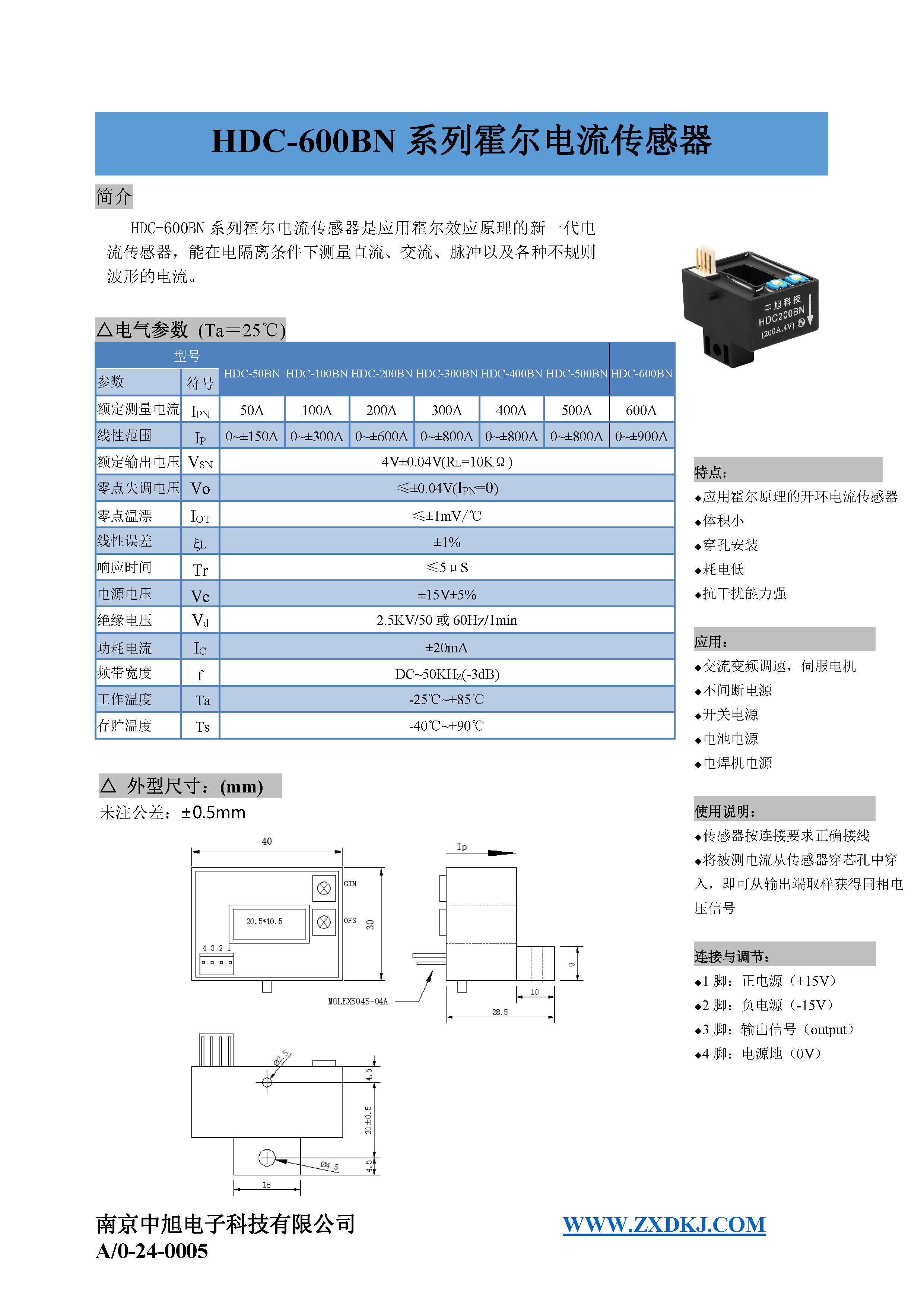 HDC-200BN系列霍爾電流傳感器是應(yīng)用霍爾效應(yīng)原理的新一代電流傳感器,能在電隔離條件下測(cè)量直流、交流、脈沖以及各種不規(guī)則波形的電流。